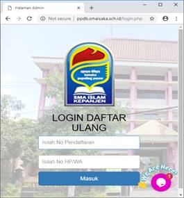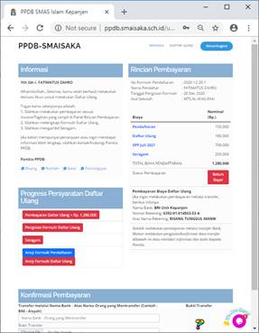 - Bisa melakukan Pembayaran dengan Biaya Daftar Ulang dengan Transfer Bank dan bisa Konfirmasi Pembayaran dengan mengisi Form Konfirmasi Pembayaran atau juga dengan WA Operator/Petugas dengan mengirim Bukti Transfer dan data akan di Validasi max 24 Jam.